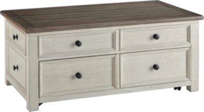 Its textured antique white finish creates a vintage two-tone look that will endure for years. Enjoy beautiful cottage style in the classic Bolanburg lift top coffee table. Store serve and showcase your favorite things with the Bolanburg lift top cocktail table.